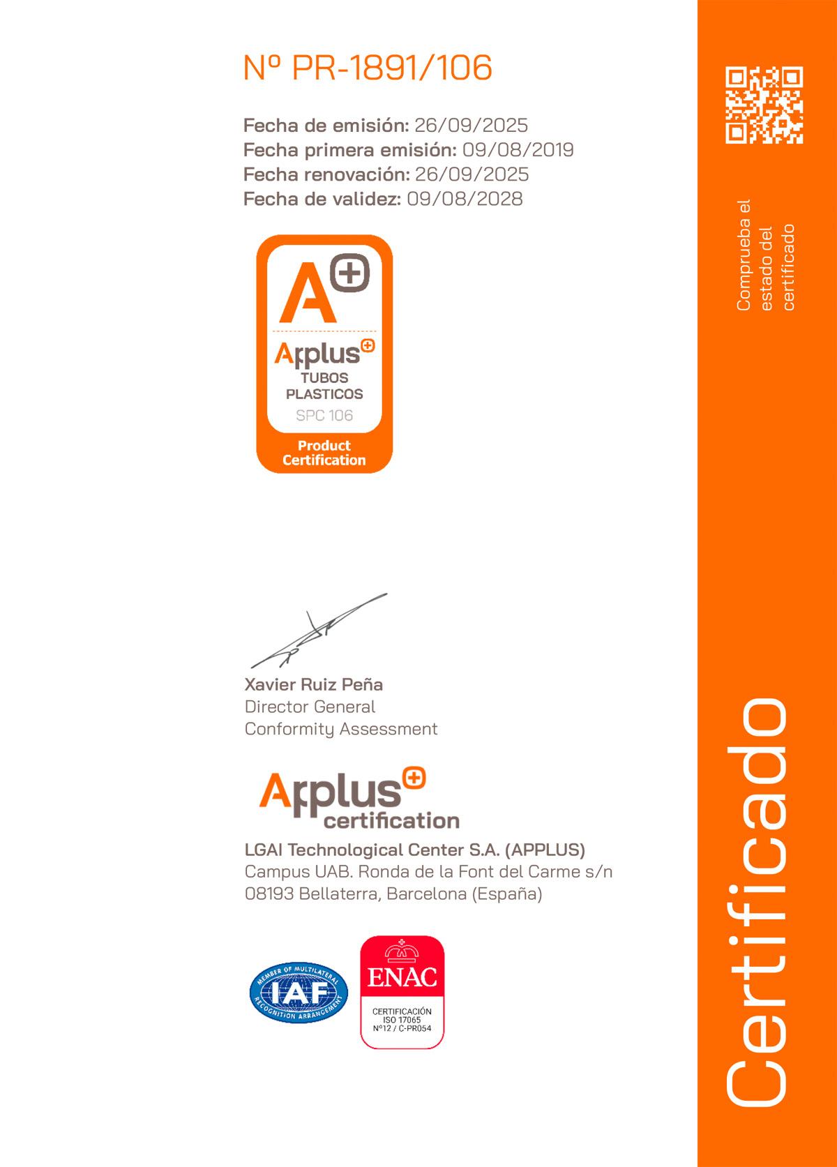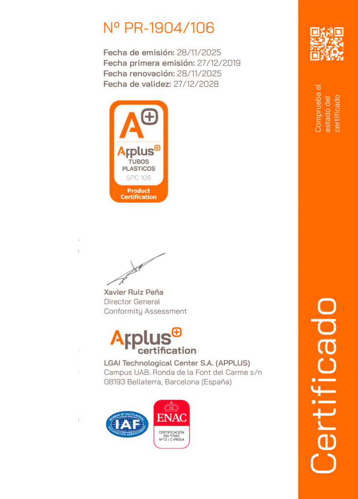 CERTIFICADO UNE-EN-1452 DIST-TUBES