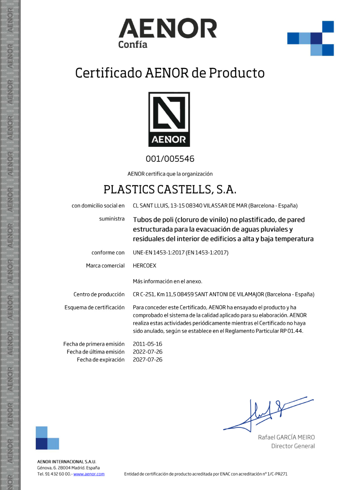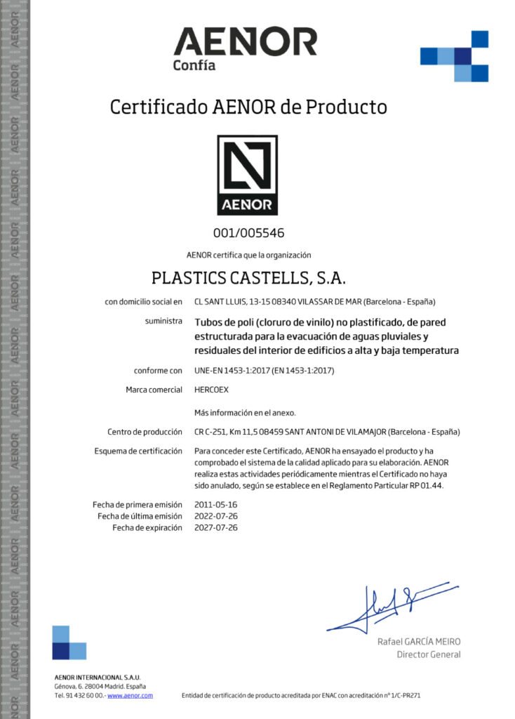CERTIFICADO HERCOEX UNE-EN 1453