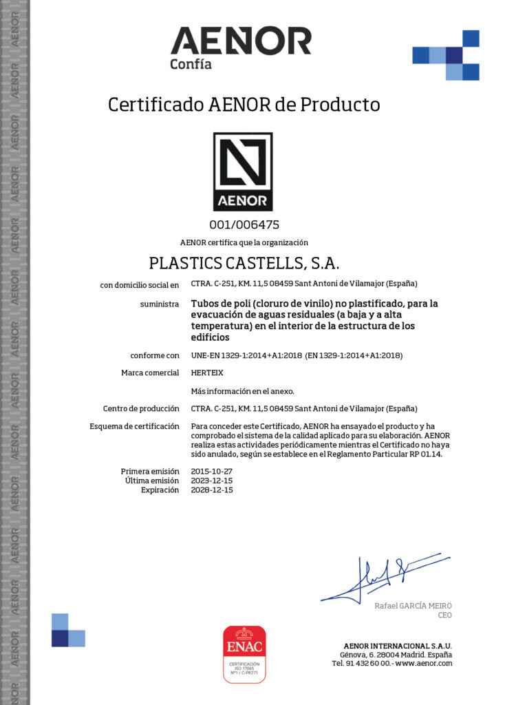 CERTIFICADO UNE EN 1401 HERSAN (TEJA)